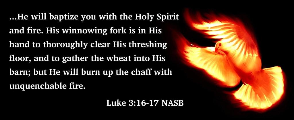 You will be lovingly led by the Holy Spirit, but you must want to follow and you must choose to follow. Obviously this will require you to step away from the world as the world will also give you choices and more than likely these are not choices that will enhance your walk with God. If you follow the world instead of the Spirit, you are “quenching” the Spirit. To QUENCH the Holy Spirit is to resist: to fight or struggle against, and in doing so, you may cool or put out the Spirit until you can no longer hear instruction. Matthew 3:11: John the Baptist tells us: “I baptize you with water for repentance, but the One who is coming after me is more powerful than I. I am not worthy to remove His sandals. He Himself will baptize you with the Holy Spirit and fire. In 1 Thessalonians 5:19 , Paul tells the church, “Do not QUENCH the Spirit.” Quenching the Spirit is what happens when we don’t listen to the Spirit, when we do what we know is wrong following our own worldly desires. (visit this website for definition: https://av1611.com/kjbp/kjv-dictionary/quench.html )