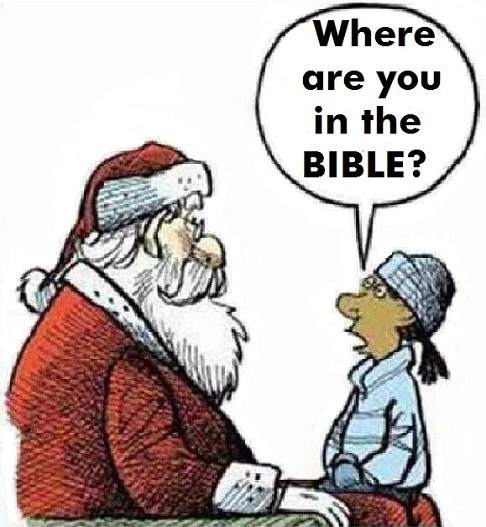 We’ve really got it wrong in so many ways – so here goes! Have you ever noticed that Santa has been given most if not all the attributes of Heavenly Father? I’m going to name just a few…it’s up to you to look into this. I just want to raise your awareness. Santa is OMNISCIENT: he sees you when you’re sleeping, he knows when you’re awake, he knows when you’ve been bad or good…so on and so on. Santa gives GOOD GIFTS to children who behave and who mind their parents (4th commandment – honor thy father and thy mother). Children who don’t behave will receive nothing. Heavenly Father gives eternal life to those who love Jesus and obey Him and eternal damnation to those who follow Satan. Santa is OMNIPRESENT: in 24 hours, he can visit every home on the planet that celebrates Christmas. Santa is OMNIPOTENT: he has the power to carry and deliver billions of presents all over the world. The one that really gets me the most is: Santa is Coming Soon! Another lie has been neatly wrapped about this “jolly old elf”. In Webster’s dictionary, 1828: “ELF…a spirit, the night-mar; a ghost, hag, witch”. The Scriptures tell us that JESUS is COMING SOON! Santa even has elves to carry out his many tasks. Jesus has Angels who minister to Him and carry out his instructions. If you stop to think about it, doesn’t it make you sick that Satan has stolen OUR SAVIOR’S IDENTITY and given it away to a fantasy! The most gut wrenching part of this picture is that we as Christians, who should know better, have let Satan get away with this and we’ve helped him in the deception.